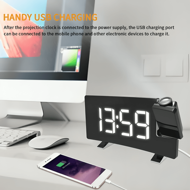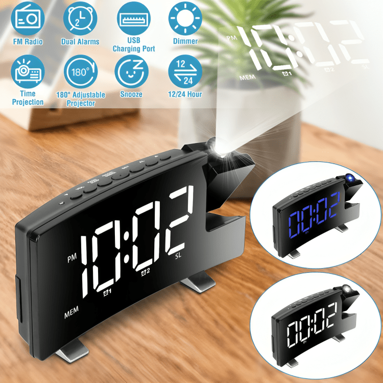 ⏰ Réveil Projecteur Multifonction à Écran LED Courbé